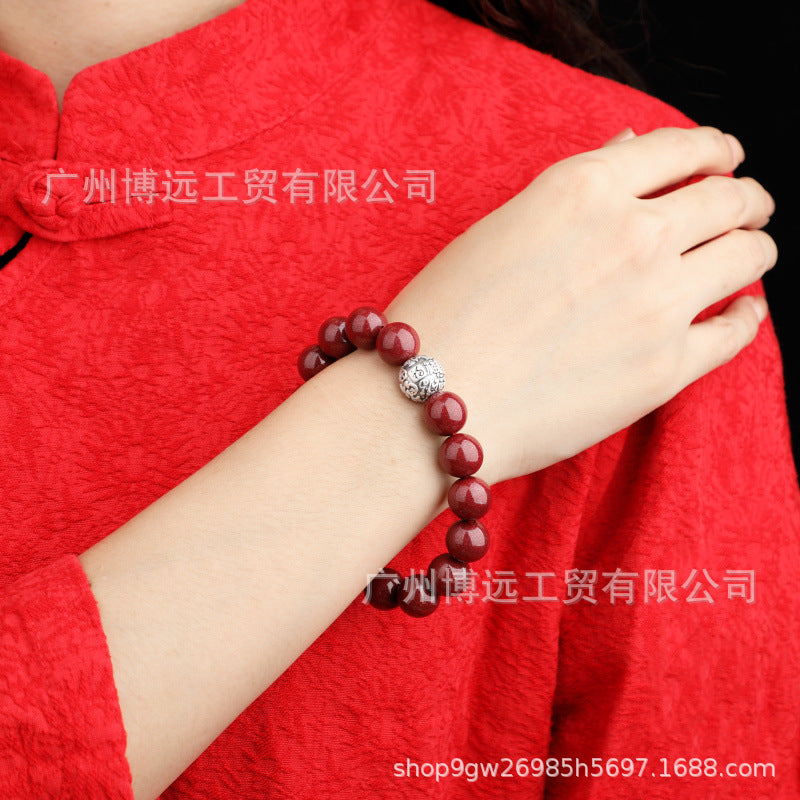 天然原矿朱砂 高含量紫金砂圆珠手串s925银百福 金钱珠 单圈手链
