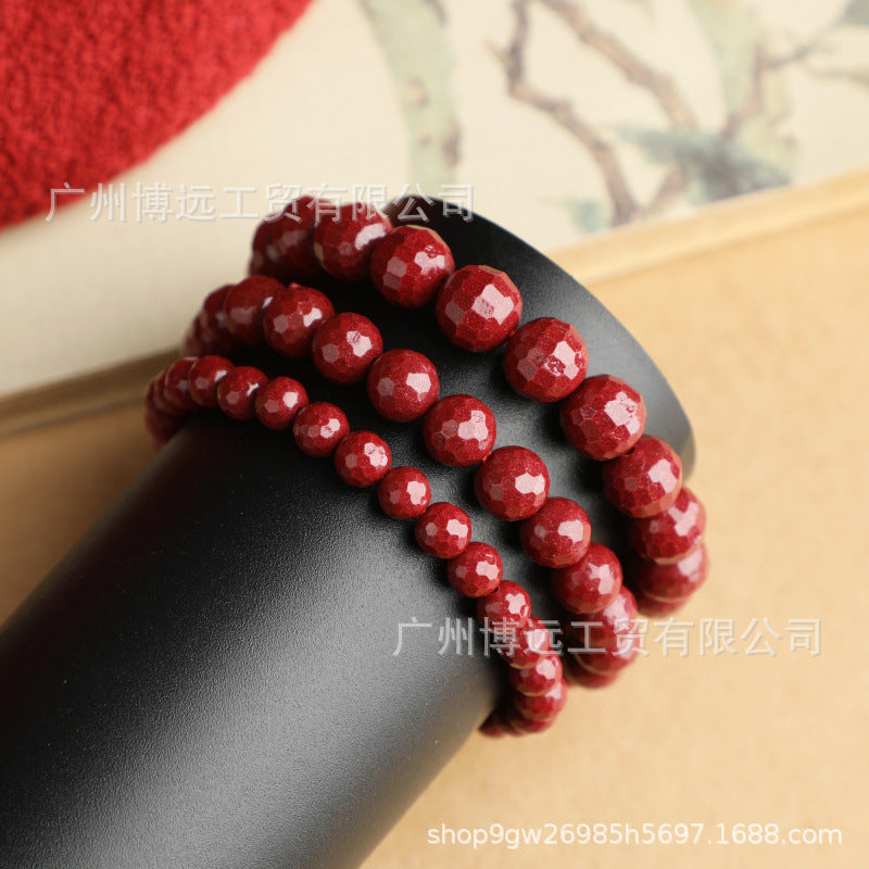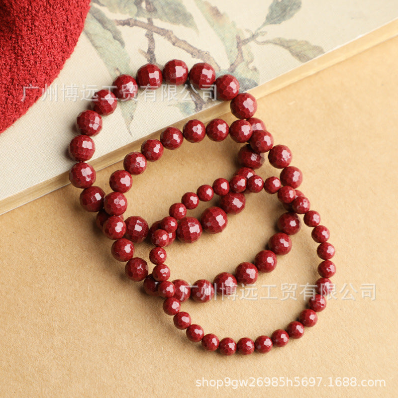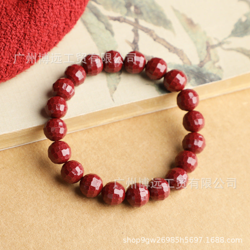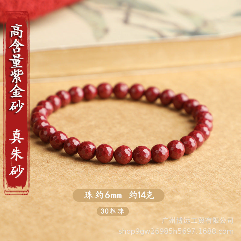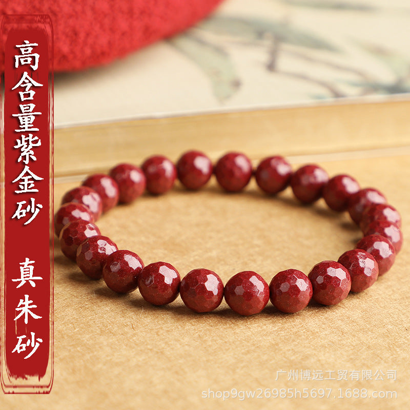 天然原矿真朱砂 高含量紫金砂切面珠手串 男女单圈朱砂手链