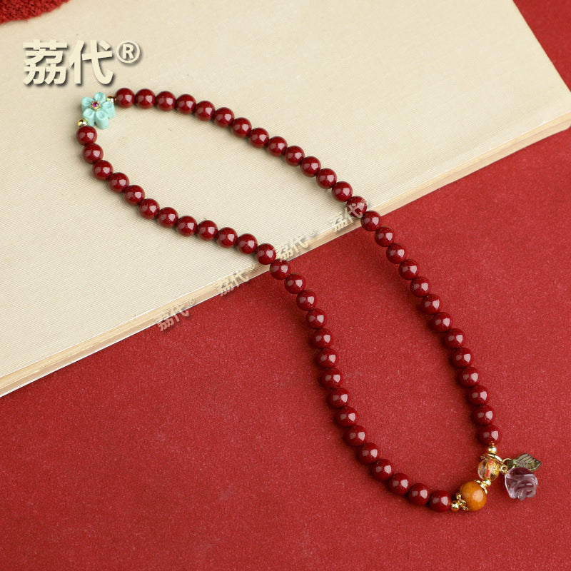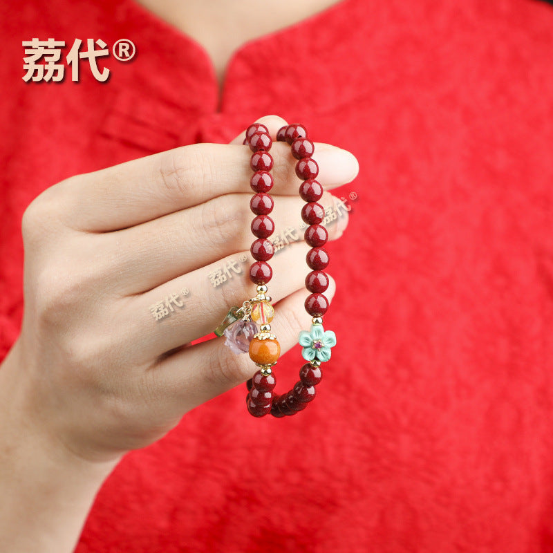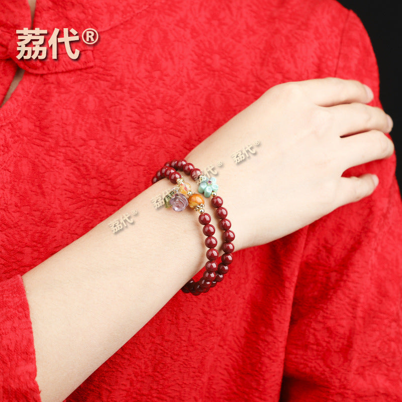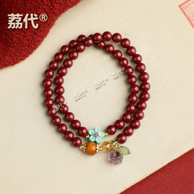 荔代 批发朱砂 紫金砂手链 双圈手串两圈 配天然蜜蜡鼓珠 紫水晶